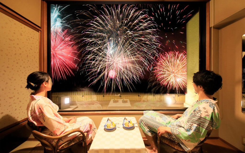 当館から熱海花火大会打ち上げ場所は目と鼻の先。ご宿泊いただきながら目前に花火をご覧いただけます。