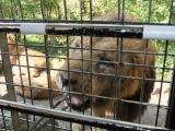 バスに乗ってるのですが、外側がこの網目になっておりまして、途中、ライオンや熊、ラクダなどに餌をあげることができます♪