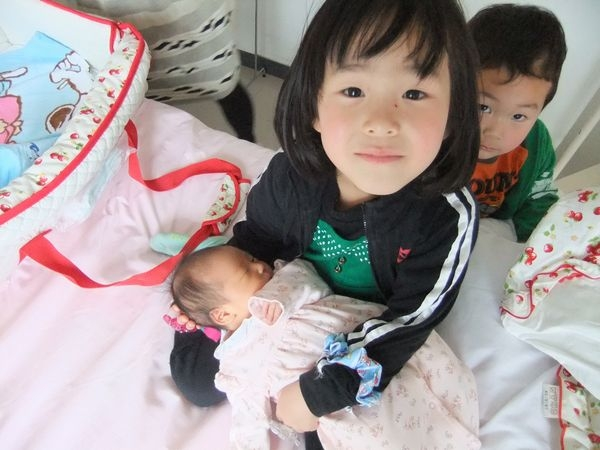 上の子2人も初めて会う赤ちゃんに思わず笑顔が漏れていました。