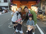 姉妹館の みかんの木 では毎年お客様も一緒に写真後ろにある「山車(だし)」を一緒に引っ張れる体験型イベントも行っており、今年も色々なお客様に山車を引っ張って頂きました。