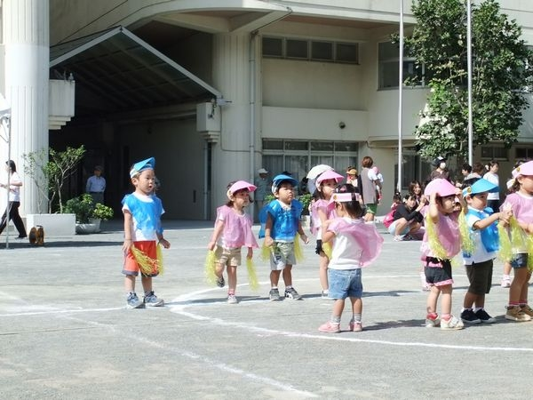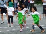 写真は、イモムシさんになって、着替えながらチョウチョさんになる。と言う競技です。