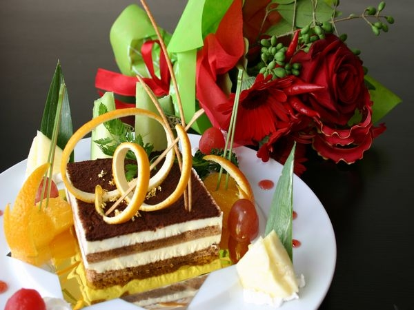 ケーキとミニブーケが付いたちょっとお洒落なプランです。