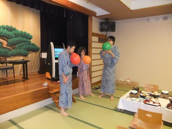 風船を二人が抱き合って割ります。愛がなければ割れません(笑