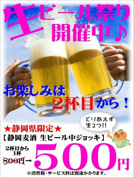 1杯目800円の生ビールを2杯目から500円♪