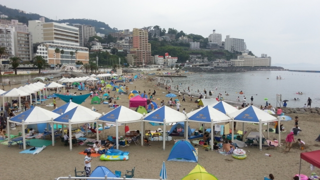 朝8時の熱海サンビーチです。