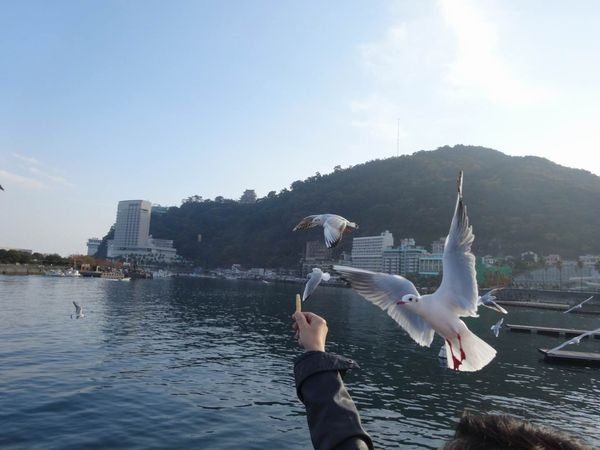 手に持っているだけで空を飛んできたカモメさんが「パクッ」と食べてくれるので感動(笑