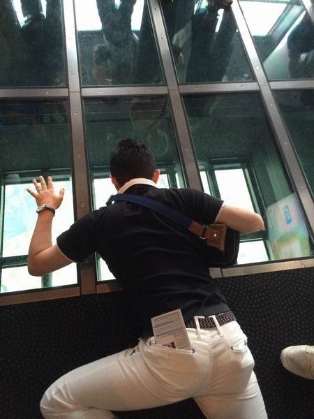高い所コワイ・・・・・・・・・でも頑張ってネタ作り!ガラス床でこうやってきました!
