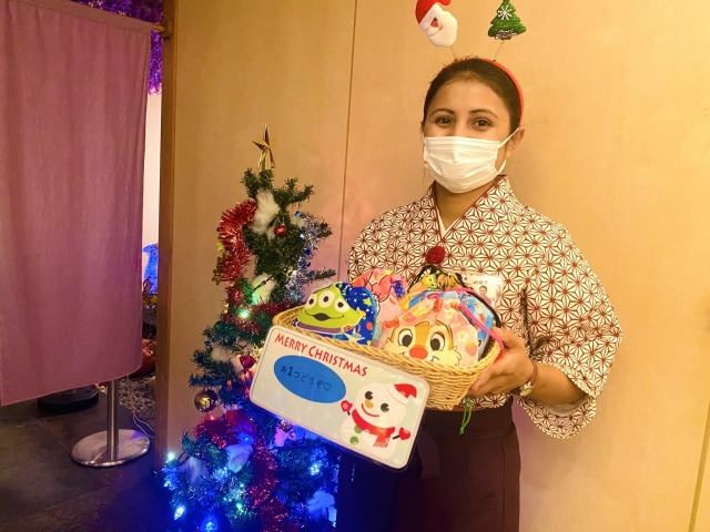 秀花園はなんともう【クリスマス仕様】ですよ☆ロビーには毎年恒例のキラキラなツリーや可愛い飾りがいっぱい♪