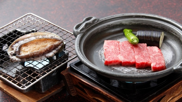 その名も・・・\【鮑踊り焼き&黒毛和牛ステーキ付】海鮮もお肉も堪能できちゃう☆贅沢なよくばりさんプラン♪【部屋食】/