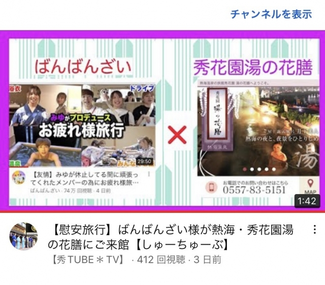 しかも、当館のYOUTUBEチャンネル“秀TUBE*TV”の宣伝まで、動画内で行っていただいて・・・恐縮でございまぁぁぁす!!!!(全力のペコリ)