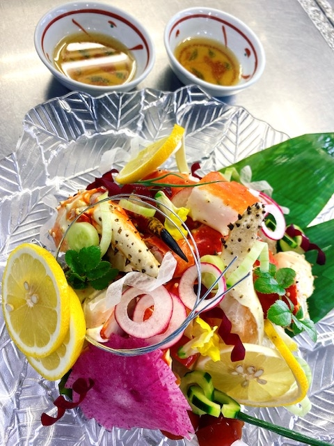 分厚いぷりっぷりのカニの身をお好みでカニ酢をつけてお召し上がりください♪