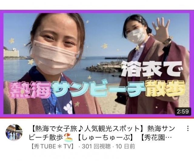 動画タイトルは・・・【熱海で女子旅♪人気観光スポット】熱海サンビーチ散歩【しゅーちゅーぶ】【秀花園湯の花膳】