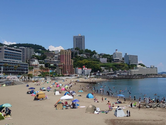 秀花園から徒歩約20分、【熱海サンビーチ】は今年海開きしておりません。