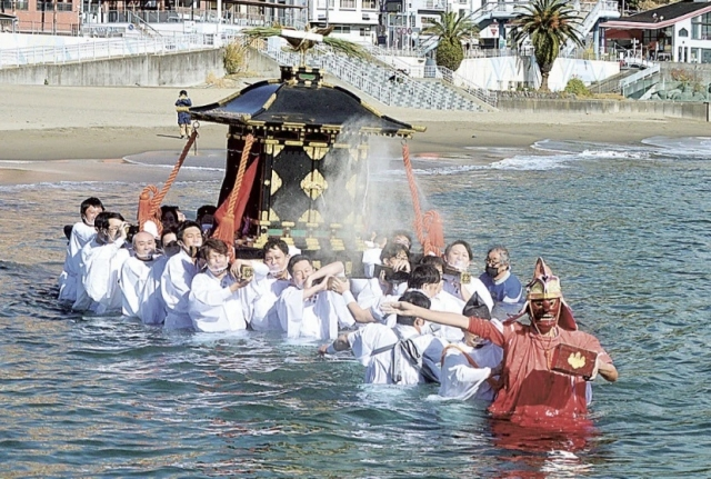 さて!いきなりですが、当館の若旦那が、ななななんとヤフーニュースに取り上げられました!!なぜかというと、実は先日11月23日に熱海サンビーチで、【浜降り神事】が行われたからです☆