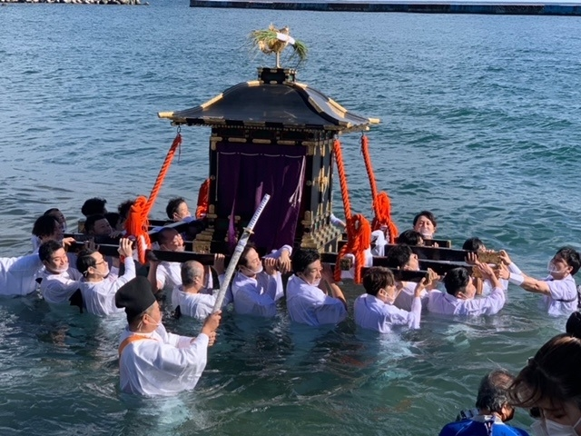 毎年7月に行われるのですが、土石流の影響で今年は11月に延期。いつもより寒い海での開催となりましたが、それを感じさせない力強さ・・・さすがです!!!!!