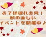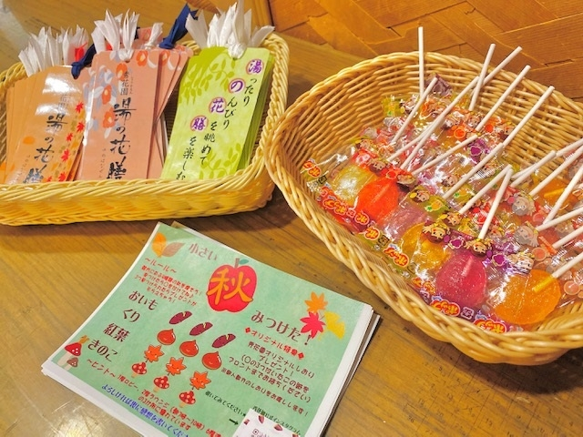 館内のいたる所に飾られたもみじ・さつまいも・くりのステッカーを見つけて、用紙に〇をつけます♪〇を3つ集めたら、素敵なプレゼントがもらえちゃう!というイベントでーす!!