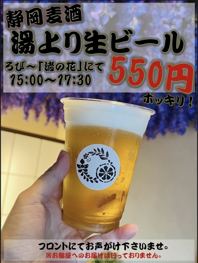 秀花園では生ビールをお得に楽しめちゃう【湯上り生ビール】を
